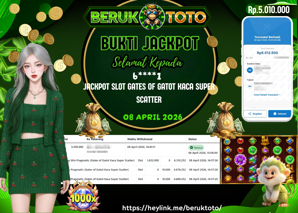 SELAMAT kepada Mr. N Telah menang dalam permainan JACKPOT SLOT GATES OF GATOT KACA SUPER SCATTER Rp.5.010.000,- Setelah mengisi formulir withdraw dengan hanya dalam waktu 5 - 10 Menit langsung di transfer ke rekening yang terdaftar. Bukti pembayaran ini adalah bukti yang Valid dan dapat di Pertanggung Jawabkan.