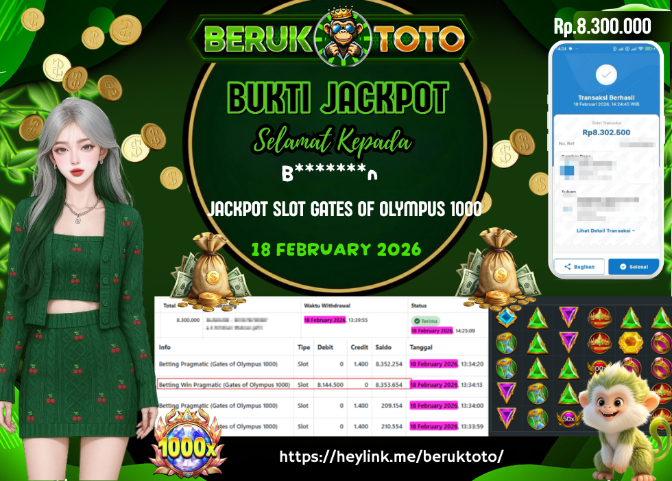SELAMAT kepada Mr. b Telah menang dalam permainan JACKPOT SLOT GATES OF OLYMPUS 1000 Rp.8.300.000,- Setelah mengisi formulir withdraw dengan hanya dalam waktu 5 - 10 Menit langsung di transfer ke rekening yang terdaftar. Bukti pembayaran ini adalah bukti yang Valid dan dapat di Pertanggung Jawabkan.