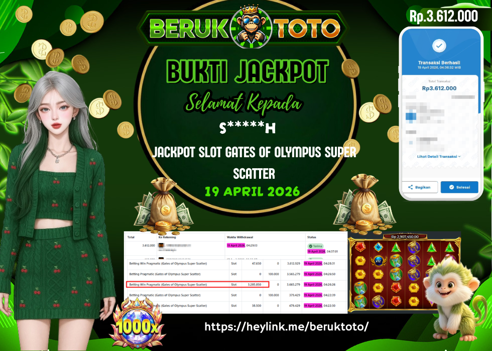 SELAMAT kepada Mr. S Telah menang dalam permainan JACKPOT SLOT GATES OF OLYMPUS SUPER SCATTER Rp.3.612.000,- Setelah mengisi formulir withdraw dengan hanya dalam waktu 5 - 10 Menit langsung di transfer ke rekening yang terdaftar. Bukti pembayaran ini adalah bukti yang Valid dan dapat di Pertanggung Jawabkan.