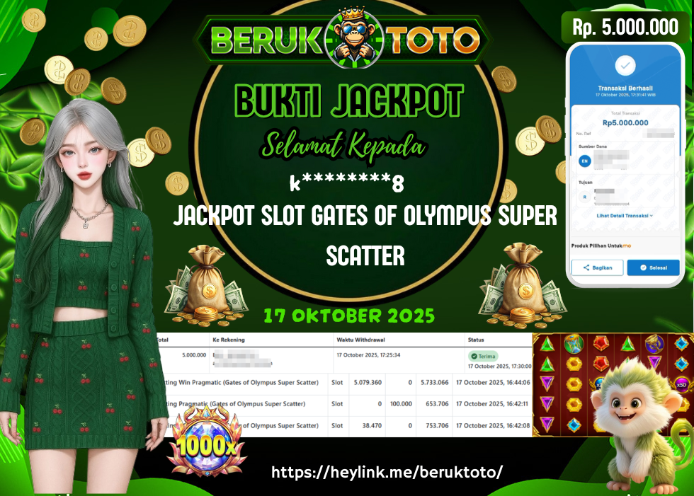 SELAMAT kepada Mr. D Telah menang dalam permainan JACKPOT SLOT GATES OF OLYMPUS SUPER SCATTER Rp.5.000.000,- Setelah mengisi formulir withdraw dengan hanya dalam waktu 5 - 10 Menit langsung di transfer ke rekening yang terdaftar. Bukti pembayaran ini adalah bukti yang Valid dan dapat di Pertanggung Jawabkan.
