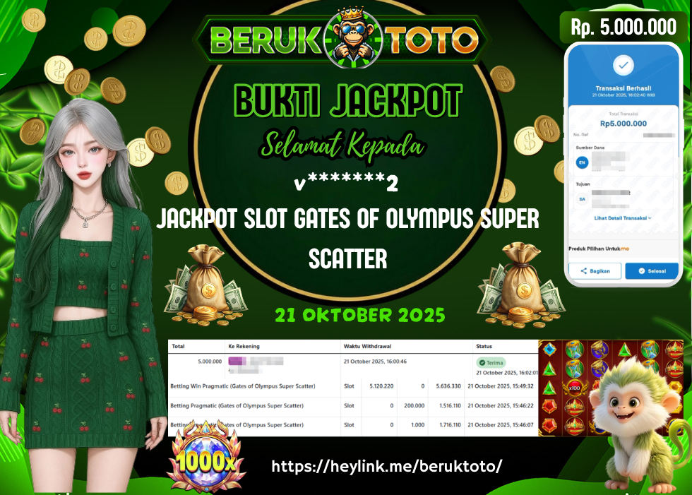 SELAMAT kepada Mr. V Telah menang dalam permainan JACKPOT SLOT GATES OF OLYMPUS SUPER SCATTER Rp.5.000.000,- Setelah mengisi formulir withdraw dengan hanya dalam waktu 5 - 10 Menit langsung di transfer ke rekening yang terdaftar. Bukti pembayaran ini adalah bukti yang Valid dan dapat di Pertanggung Jawabkan.