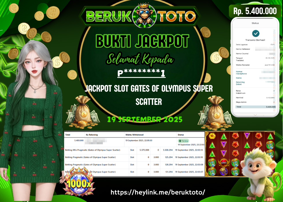SELAMAT kepada Mr. A Telah menang dalam permainan TOGEL JACKPOT SLOT GATES OF OLYMPUS SUPER SCATTER Rp.5.400.000,- Setelah mengisi formulir withdraw dengan hanya dalam waktu 5 - 10 Menit langsung di transfer ke rekening yang terdaftar. Bukti pembayaran ini adalah bukti yang Valid dan dapat di Pertanggung Jawabkan.