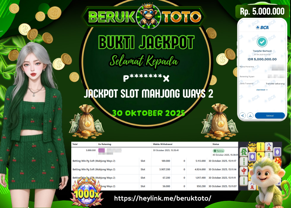 SELAMAT kepada Mr. Y Telah menang dalam permainan JACKPOT SLOT MAHJONG WAYS 2 Rp.5.000.000,- Setelah mengisi formulir withdraw dengan hanya dalam waktu 5 - 10 Menit langsung di transfer ke rekening yang terdaftar. Bukti pembayaran ini adalah bukti yang Valid dan dapat di Pertanggung Jawabkan.