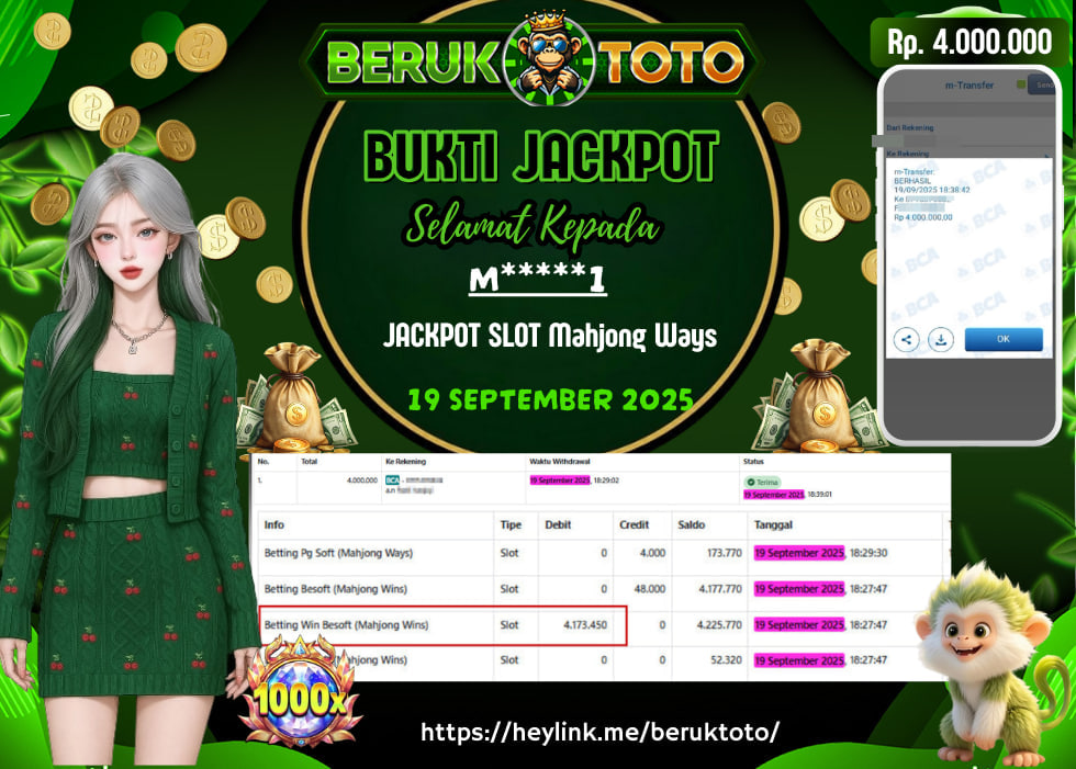 SELAMAT kepada Mr. M Telah menang dalam permainan SLOT MAHJONG WAYS Rp.4.000.000,- Setelah mengisi formulir withdraw dengan hanya dalam waktu 5 - 10 Menit langsung di transfer ke rekening yang terdaftar. Bukti pembayaran ini adalah bukti yang Valid dan dapat di Pertanggung Jawabkan.