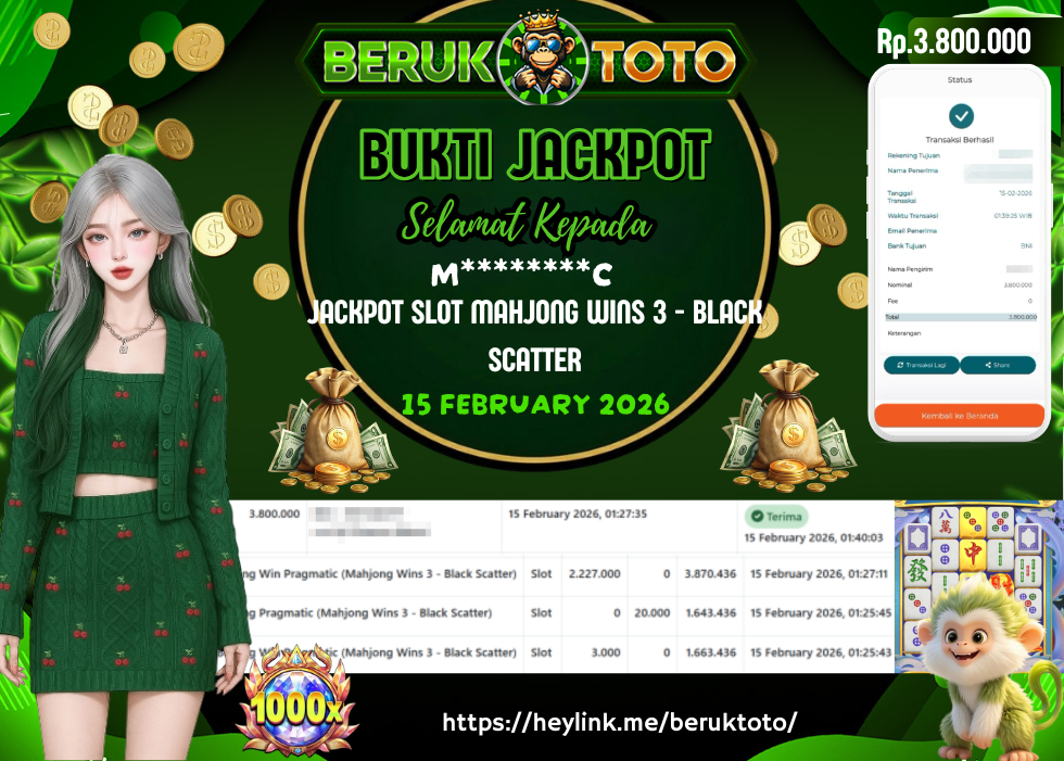 SELAMAT kepada Mr. M Telah menang dalam permainan JACKPOT SLOT MAHJONG WINS 3 - BLACK SCATTER Rp.3.800.000,- Setelah mengisi formulir withdraw dengan hanya dalam waktu 5 - 10 Menit langsung di transfer ke rekening yang terdaftar. Bukti pembayaran ini adalah bukti yang Valid dan dapat di Pertanggung Jawabkan.