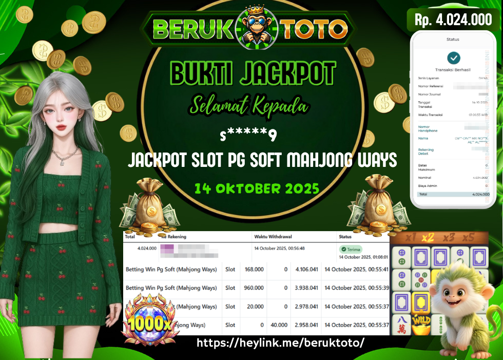 SELAMAT kepada Mr. M Telah menang dalam permainan JACKPOT SLOT PG SOFT MAHJONG WAYS Rp.4.024.000,- Setelah mengisi formulir withdraw dengan hanya dalam waktu 5 - 10 Menit langsung di transfer ke rekening yang terdaftar. Bukti pembayaran ini adalah bukti yang Valid dan dapat di Pertanggung Jawabkan.