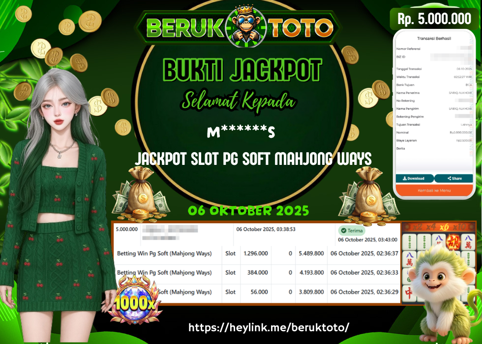SELAMAT kepada Mr. M Telah menang dalam permainan JACKPOT SLOT PG SOFT MAHJONG WAYS Rp.5.000.000,- Setelah mengisi formulir withdraw dengan hanya dalam waktu 5 - 10 Menit langsung di transfer ke rekening yang terdaftar. Bukti pembayaran ini adalah bukti yang Valid dan dapat di Pertanggung Jawabkan.