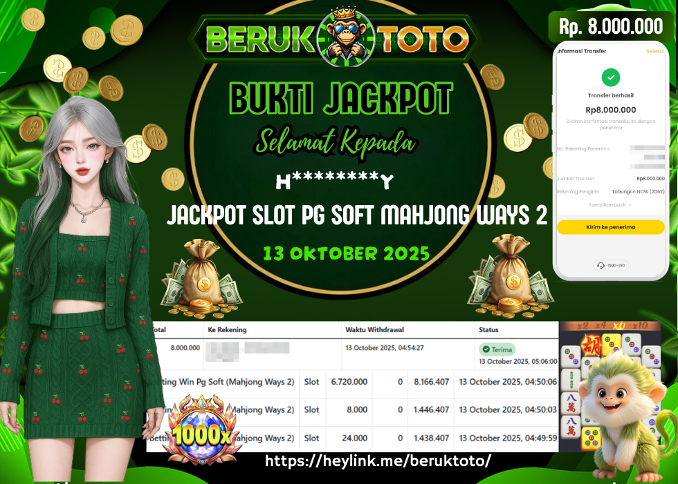 SELAMAT kepada Mr. S Telah menang dalam permainan JACKPOT SLOT PG SOFT MAHJONG WAYS 2 Rp.8.000.000,- Setelah mengisi formulir withdraw dengan hanya dalam waktu 5 - 10 Menit langsung di transfer ke rekening yang terdaftar. Bukti pembayaran ini adalah bukti yang Valid dan dapat di Pertanggung Jawabkan.