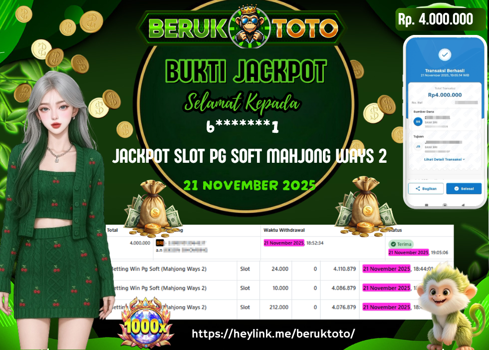 SELAMAT kepada Mr. B Telah menang dalam permainan JACKPOT SLOT PG SOFT MAHJONG WAYS 2 Rp.4.000.000,- Setelah mengisi formulir withdraw dengan hanya dalam waktu 5 - 10 Menit langsung di transfer ke rekening yang terdaftar. Bukti pembayaran ini adalah bukti yang Valid dan dapat di Pertanggung Jawabkan.