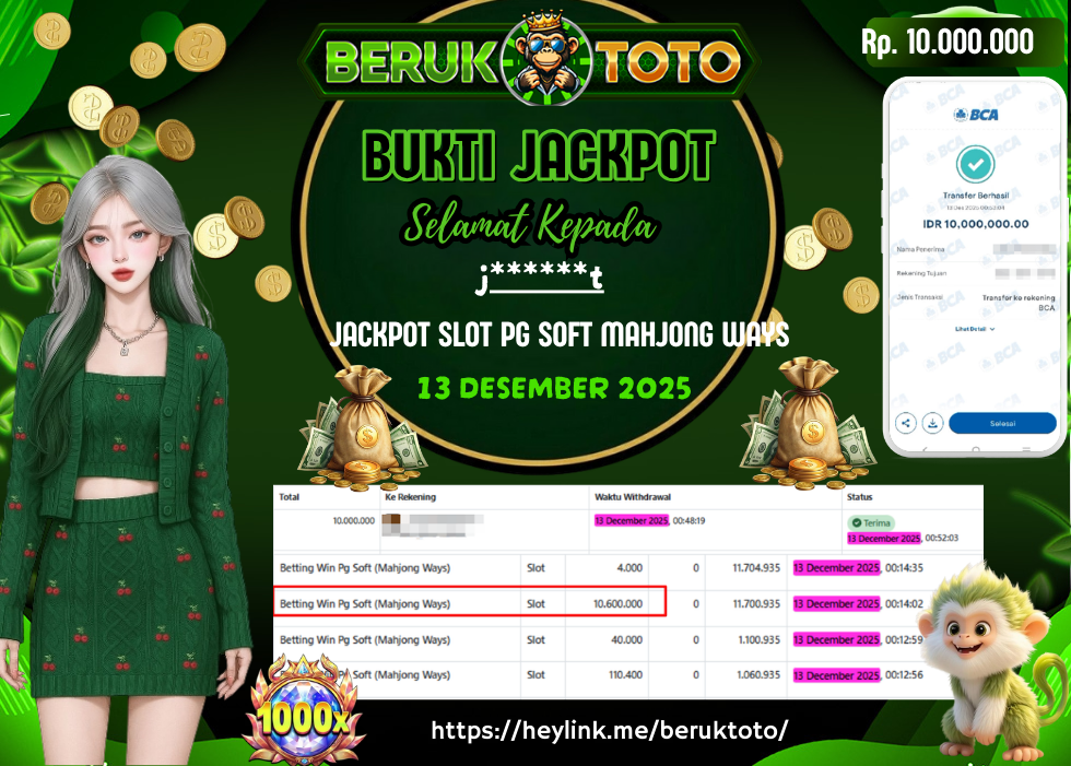 SELAMAT kepada Mr. J Telah menang dalam permainan JACKPOT SLOT PG SOFT MAHJONG WAYS Rp.10.000.000,- Setelah mengisi formulir withdraw dengan hanya dalam waktu 5 - 10 Menit langsung di transfer ke rekening yang terdaftar. Bukti pembayaran ini adalah bukti yang Valid dan dapat di Pertanggung Jawabkan.
