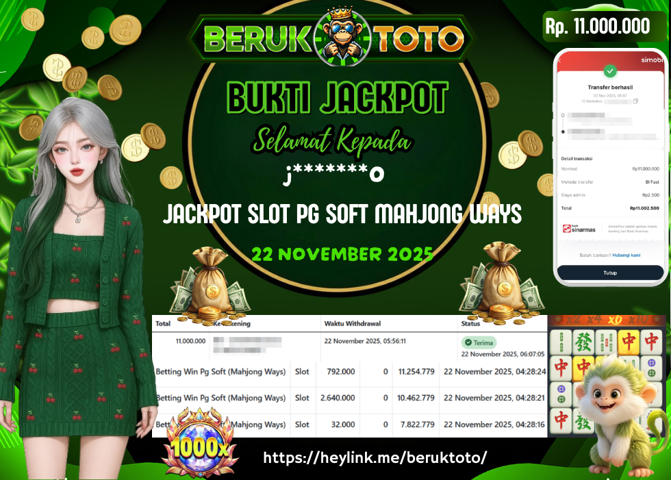 SELAMAT kepada Mr. U Telah menang dalam permainan JACKPOT SLOT PG SOFT MAHJONG WAYS Rp.11.000.000,- Setelah mengisi formulir withdraw dengan hanya dalam waktu 5 - 10 Menit langsung di transfer ke rekening yang terdaftar. Bukti pembayaran ini adalah bukti yang Valid dan dapat di Pertanggung Jawabkan.