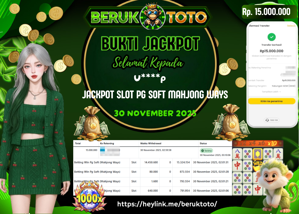 SELAMAT kepada Mr. U Telah menang dalam permainan JACKPOT SLOT PG SOFT MAHJONG WAYS Rp.15.000.000,- Setelah mengisi formulir withdraw dengan hanya dalam waktu 5 - 10 Menit langsung di transfer ke rekening yang terdaftar. Bukti pembayaran ini adalah bukti yang Valid dan dapat di Pertanggung Jawabkan.