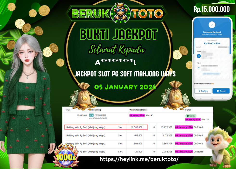 SELAMAT kepada Mr. A Telah menang dalam permainan JACKPOT SLOT PG SOFT MAHJING WAYS Rp.15.000.000,- Setelah mengisi formulir withdraw dengan hanya dalam waktu 5 - 10 Menit langsung di transfer ke rekening yang terdaftar. Bukti pembayaran ini adalah bukti yang Valid dan dapat di Pertanggung Jawabkan.