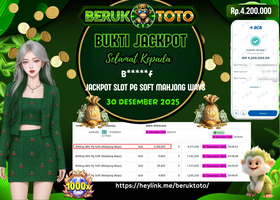 SELAMAT kepada Mr. B Telah menang dalam permainan JACKPOT SLOT PG SOFT MAHJONG WAYS Rp.4.200.000,- Setelah mengisi formulir withdraw dengan hanya dalam waktu 5 - 10 Menit langsung di transfer ke rekening yang terdaftar. Bukti pembayaran ini adalah bukti yang Valid dan dapat di Pertanggung Jawabkan.