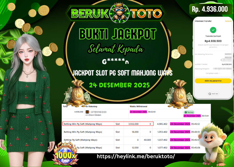 SELAMAT kepada Mr. G Telah menang dalam permainan JACKPOT SLOT PG SOFT MAHJONG WAYS Rp.4.936.000,- Setelah mengisi formulir withdraw dengan hanya dalam waktu 5 - 10 Menit langsung di transfer ke rekening yang terdaftar. Bukti pembayaran ini adalah bukti yang Valid dan dapat di Pertanggung Jawabkan.