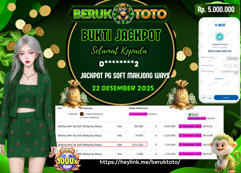 SELAMAT kepada Mr. D Telah menang dalam permainan JACKPOT SLOT PG SOFT MAHJONG WAYS Rp.5.000.000,- Setelah mengisi formulir withdraw dengan hanya dalam waktu 5 - 10 Menit langsung di transfer ke rekening yang terdaftar. Bukti pembayaran ini adalah bukti yang Valid dan dapat di Pertanggung Jawabkan.