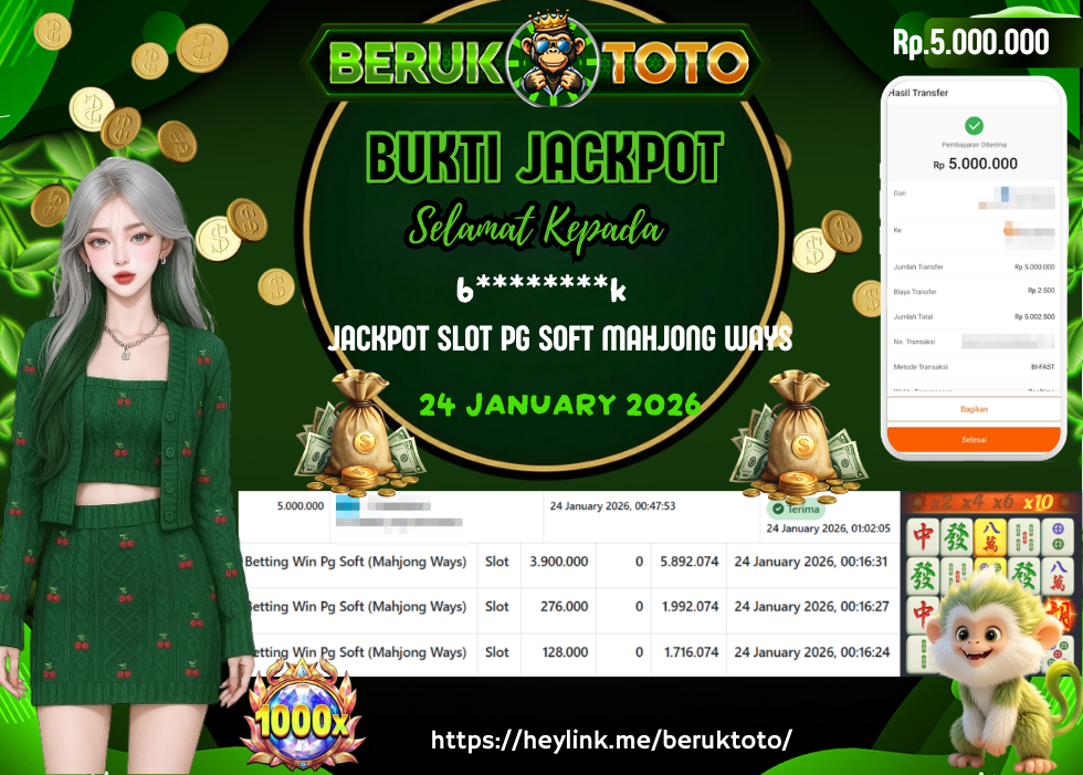 SELAMAT kepada Mr. B Telah menang dalam permainan JACKPOT SLOT PG SOFT MAHJONG WAYS Rp.5.000.000,- Setelah mengisi formulir withdraw dengan hanya dalam waktu 5 - 10 Menit langsung di transfer ke rekening yang terdaftar. Bukti pembayaran ini adalah bukti yang Valid dan dapat di Pertanggung Jawabkan.