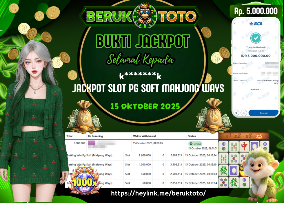 SELAMAT kepada Mr. H Telah menang dalam permainan JACKPOT SLOT PG SOFT MAHJONG WAYS Rp.5.000.000,- Setelah mengisi formulir withdraw dengan hanya dalam waktu 5 - 10 Menit langsung di transfer ke rekening yang terdaftar. Bukti pembayaran ini adalah bukti yang Valid dan dapat di Pertanggung Jawabkan.