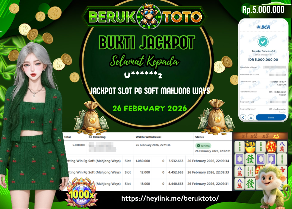 SELAMAT kepada Mr. U Telah menang dalam permainan JACKPOT JACKPOT SLOT PG SOFT MAHJONG WAYS Rp.5.000.000,- Setelah mengisi formulir withdraw dengan hanya dalam waktu 5 - 10 Menit langsung di transfer ke rekening yang terdaftar. Bukti pembayaran ini adalah bukti yang Valid dan dapat di Pertanggung Jawabkan.