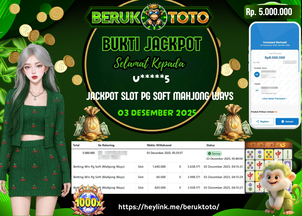 SELAMAT kepada Mr. S Telah menang dalam permainan JACKPOT SLOT PG SOFT MAHJONG WAYS Rp.5.000.000,- Setelah mengisi formulir withdraw dengan hanya dalam waktu 5 - 10 Menit langsung di transfer ke rekening yang terdaftar. Bukti pembayaran ini adalah bukti yang Valid dan dapat di Pertanggung Jawabkan.