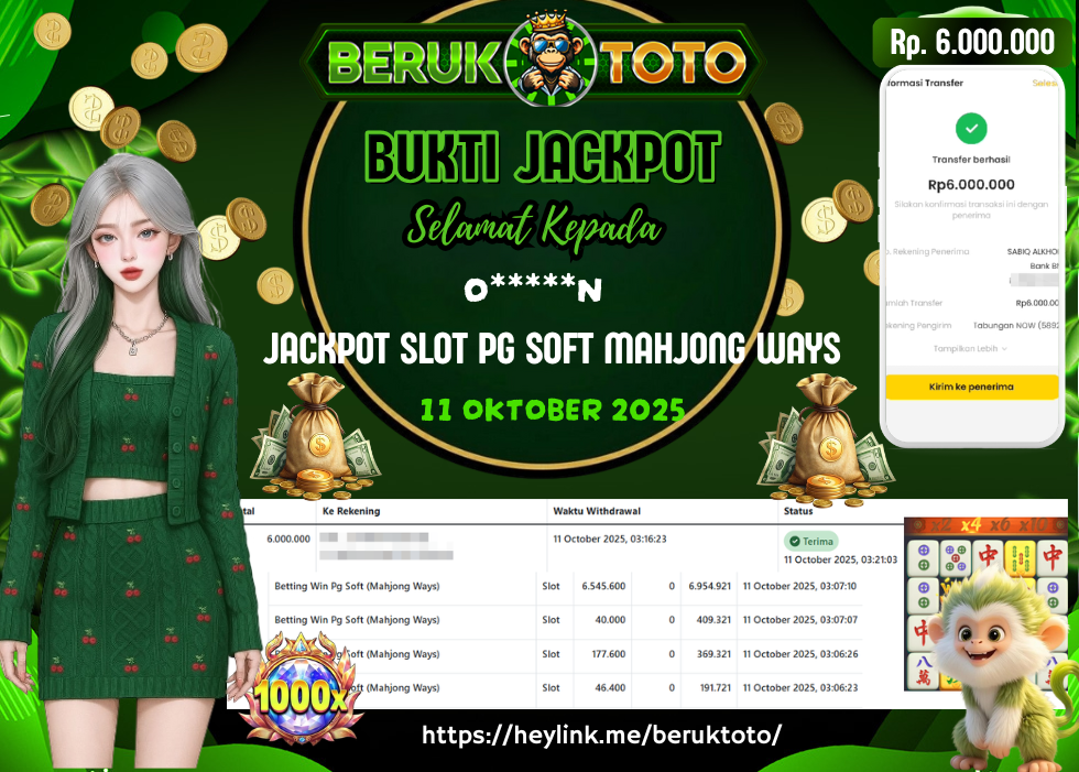 SELAMAT kepada Mr. F Telah menang dalam permainan JACKPOT SLOT PG SOFT MAHJONG WAYS Rp.6.000.000,- Setelah mengisi formulir withdraw dengan hanya dalam waktu 5 - 10 Menit langsung di transfer ke rekening yang terdaftar. Bukti pembayaran ini adalah bukti yang Valid dan dapat di Pertanggung Jawabkan.