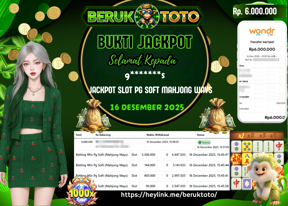 SELAMAT kepada Mr. G Telah menang dalam permainan JACKPOT SLOT PG SOFT MAHJONG WAYS Rp.6.000.000,- Setelah mengisi formulir withdraw dengan hanya dalam waktu 5 - 10 Menit langsung di transfer ke rekening yang terdaftar. Bukti pembayaran ini adalah bukti yang Valid dan dapat di Pertanggung Jawabkan.