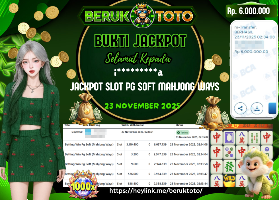 SELAMAT kepada Mr. A Telah menang dalam permainan JACKPOT SLOT PG SOFT MAHJONG WAYS Rp.6.000.000,- Setelah mengisi formulir withdraw dengan hanya dalam waktu 5 - 10 Menit langsung di transfer ke rekening yang terdaftar. Bukti pembayaran ini adalah bukti yang Valid dan dapat di Pertanggung Jawabkan.