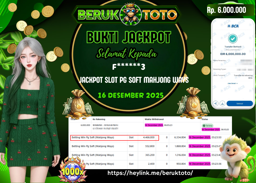 SITUS AMAN & TERPERCAYA BERUKTOTO JACKPOT SLOT PG SOFT MAHJONG WAYS Rp.6.000.000,-