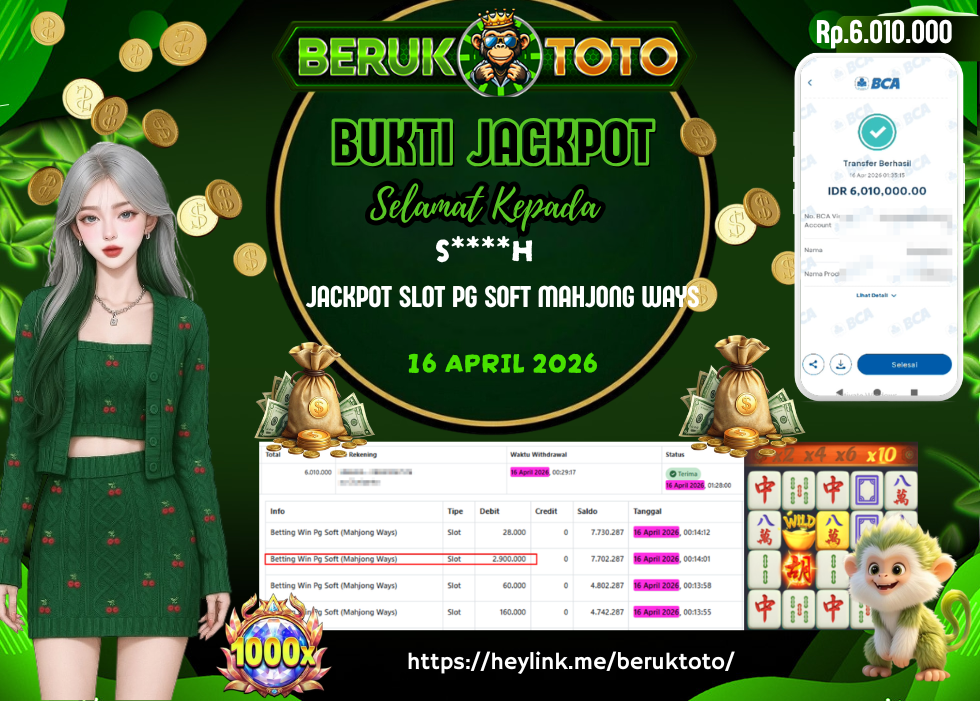 SELAMAT kepada Mr. S Telah menang dalam permainan JACKPOT SLOT PG SOFT MAHJONG WAYS Rp.6.010.000,- Setelah mengisi formulir withdraw dengan hanya dalam waktu 5 - 10 Menit langsung di transfer ke rekening yang terdaftar. Bukti pembayaran ini adalah bukti yang Valid dan dapat di Pertanggung Jawabkan.