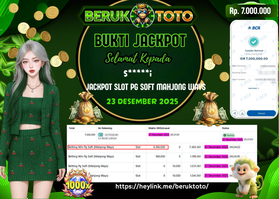 SELAMAT kepada Mr. S Telah menang dalam permainan JACKPOT SLOT PG SOFT MAHJONG WAYS Rp.7.000.000,- Setelah mengisi formulir withdraw dengan hanya dalam waktu 5 - 10 Menit langsung di transfer ke rekening yang terdaftar. Bukti pembayaran ini adalah bukti yang Valid dan dapat di Pertanggung Jawabkan.