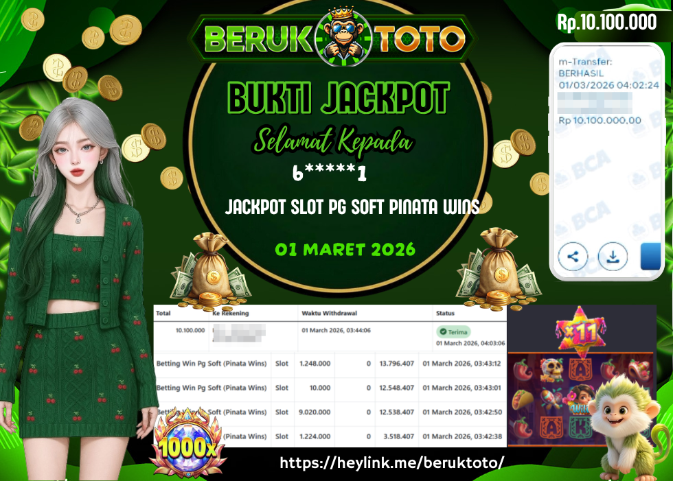 SELAMAT kepada Mr. N Telah menang dalam permainan JACKPOT SLOT PG SOFT SOFT PINATA WINS Rp.10.100.000,- Setelah mengisi formulir withdraw dengan hanya dalam waktu 5 - 10 Menit langsung di transfer ke rekening yang terdaftar. Bukti pembayaran ini adalah bukti yang Valid dan dapat di Pertanggung Jawabkan.