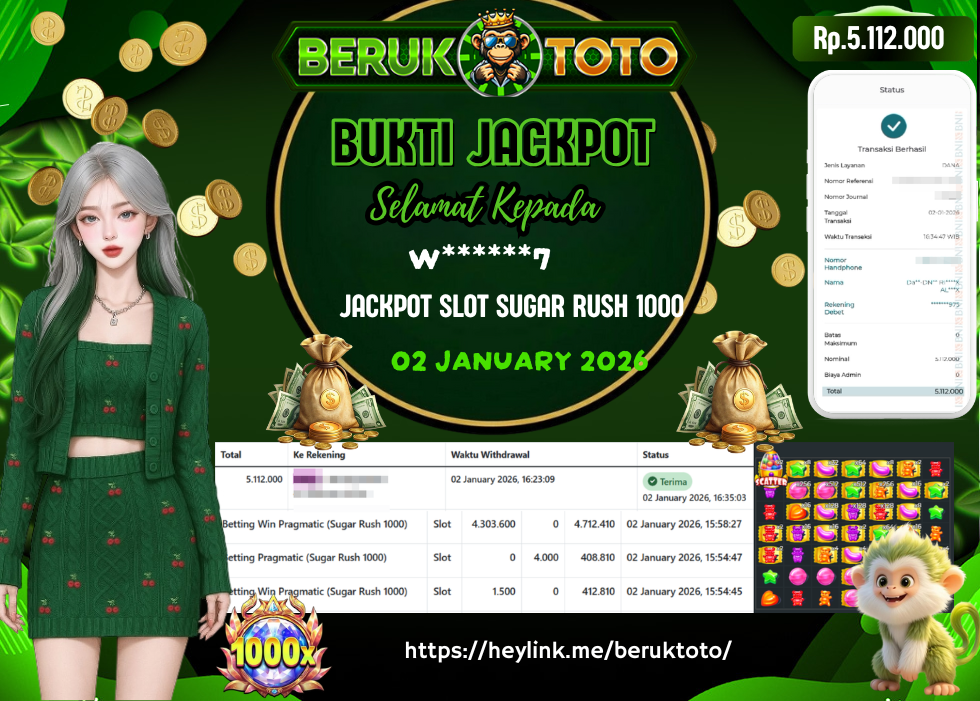 SELAMAT kepada Mr. R Telah menang dalam permainan JACKPOT SLOT SUGAR RUSH 1000 Rp.5.112.000,- Setelah mengisi formulir withdraw dengan hanya dalam waktu 5 - 10 Menit langsung di transfer ke rekening yang terdaftar. Bukti pembayaran ini adalah bukti yang Valid dan dapat di Pertanggung Jawabkan.