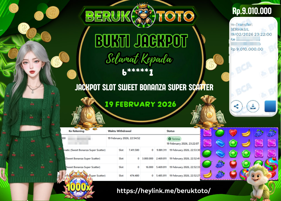 SELAMAT kepada Mr. N Telah menang dalam permainan JACKPOT SLOT SWEET BONANZA SUPER SCATTER Rp.9.010.000,- Setelah mengisi formulir withdraw dengan hanya dalam waktu 5 - 10 Menit langsung di transfer ke rekening yang terdaftar. Bukti pembayaran ini adalah bukti yang Valid dan dapat di Pertanggung Jawabkan.