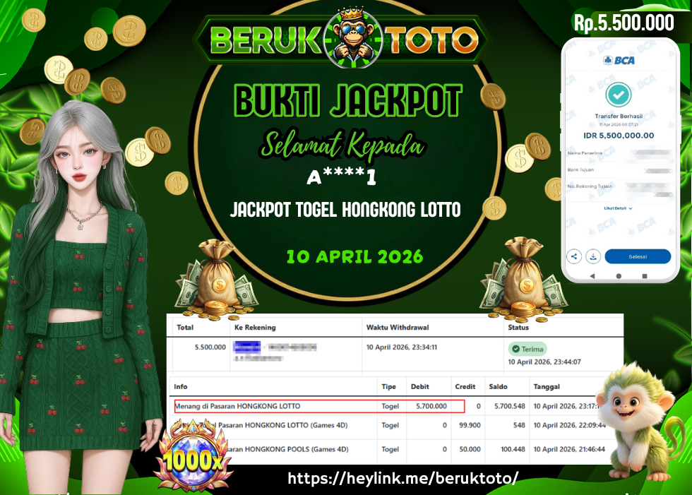 SELAMAT kepada Mr. A Telah menang dalam permainan JACKPOT TOGEL HONGKONG LOTTO Rp.5.500.000,- Setelah mengisi formulir withdraw dengan hanya dalam waktu 5 - 10 Menit langsung di transfer ke rekening yang terdaftar. Bukti pembayaran ini adalah bukti yang Valid dan dapat di Pertanggung Jawabkan.