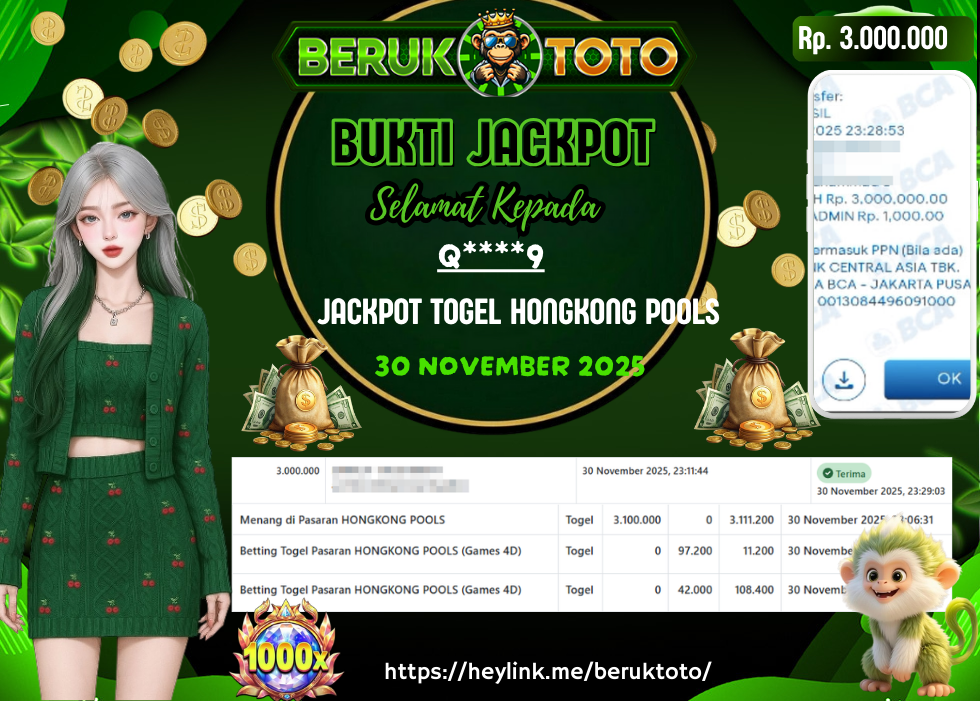 SELAMAT kepada Mr. K Telah menang dalam permainan JACKPOT TOGEL HONGKONG POOLS Rp.3.000.000,- Setelah mengisi formulir withdraw dengan hanya dalam waktu 5 - 10 Menit langsung di transfer ke rekening yang terdaftar. Bukti pembayaran ini adalah bukti yang Valid dan dapat di Pertanggung Jawabkan.