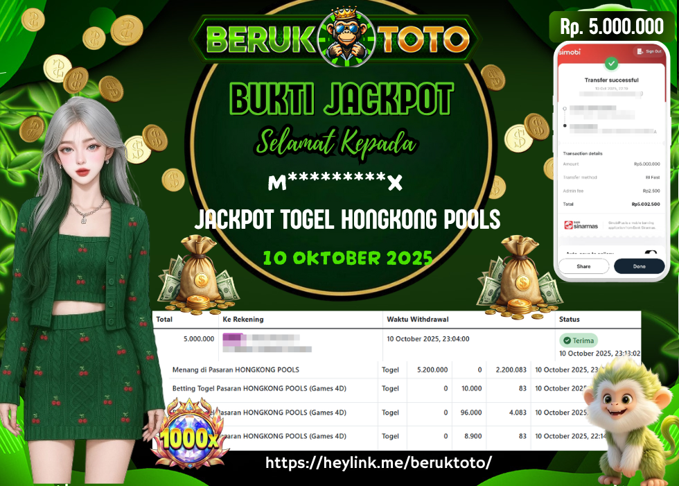 SELAMAT kepada Mr. M Telah menang dalam permainan JACKPOT TOGEL HONGKONG POOLS Rp.5.000.000,- Setelah mengisi formulir withdraw dengan hanya dalam waktu 5 - 10 Menit langsung di transfer ke rekening yang terdaftar. Bukti pembayaran ini adalah bukti yang Valid dan dapat di Pertanggung Jawabkan.