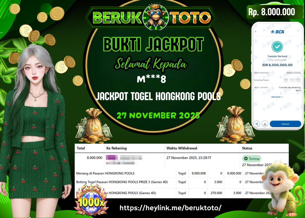 SELAMAT kepada Mr. M Telah menang dalam permainan JACKPOT TOGEL HONGKONG POOLS Rp.8.000.000,- Setelah mengisi formulir withdraw dengan hanya dalam waktu 5 - 10 Menit langsung di transfer ke rekening yang terdaftar. Bukti pembayaran ini adalah bukti yang Valid dan dapat di Pertanggung Jawabkan.