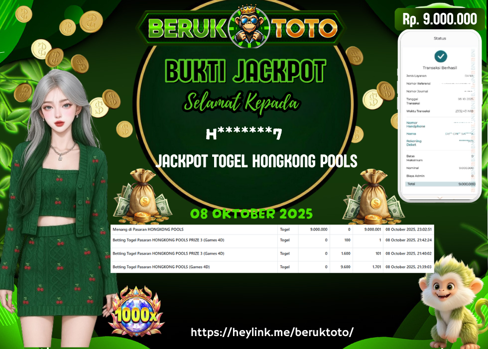 SELAMAT kepada Mr. HJ Telah menang dalam permainan JACKPOT TOGEL HONGKONG POOLS Rp.9.000.000,- Setelah mengisi formulir withdraw dengan hanya dalam waktu 5 - 10 Menit langsung di transfer ke rekening yang terdaftar. Bukti pembayaran ini adalah bukti yang Valid dan dapat di Pertanggung Jawabkan.