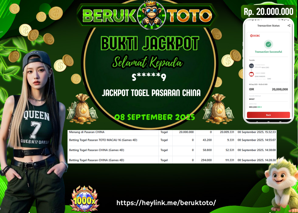 SELAMAT kepada Mr. S Telah menang dalam permainan TOGEL PASARAN CHINA Rp.20.000.000,- Setelah mengisi formulir withdraw dengan hanya dalam waktu 5 - 10 Menit langsung di transfer ke rekening yang terdaftar. Bukti pembayaran ini adalah bukti yang Valid dan dapat di Pertanggung Jawabkan.