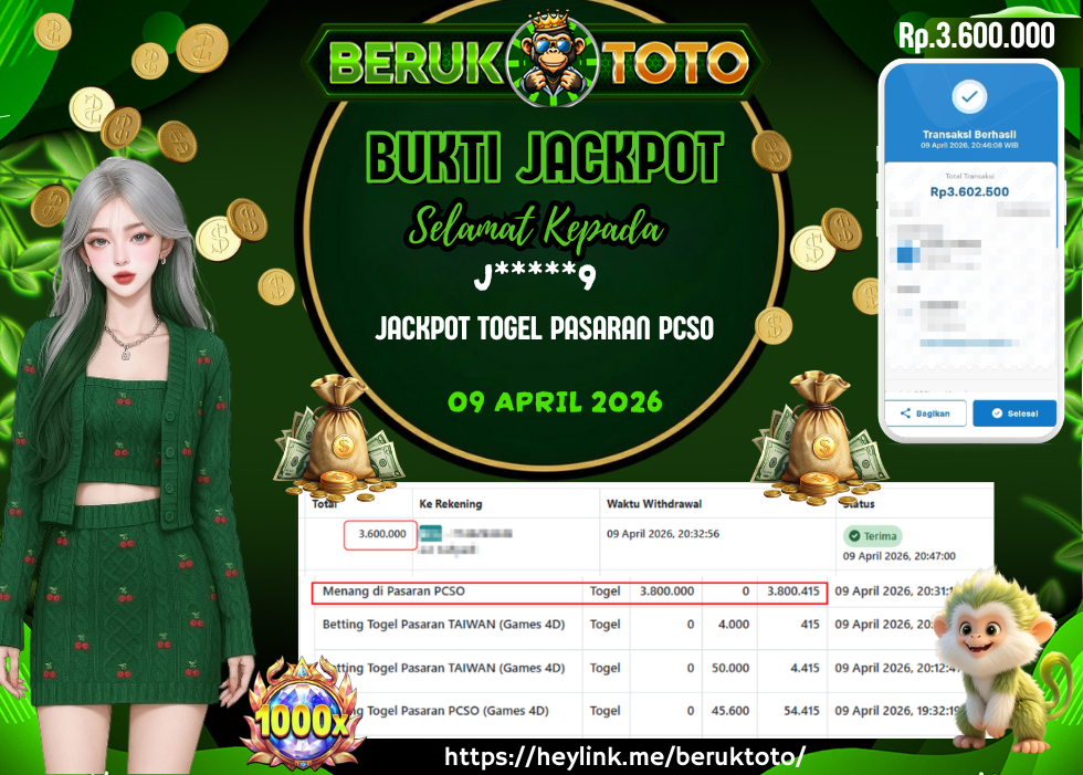 SELAMAT kepada Mr. J Telah menang dalam permainan JACKPOT TOGEL PASARAN PCSO Rp.3.600.000,- Setelah mengisi formulir withdraw dengan hanya dalam waktu 5 - 10 Menit langsung di transfer ke rekening yang terdaftar. Bukti pembayaran ini adalah bukti yang Valid dan dapat di Pertanggung Jawabkan.